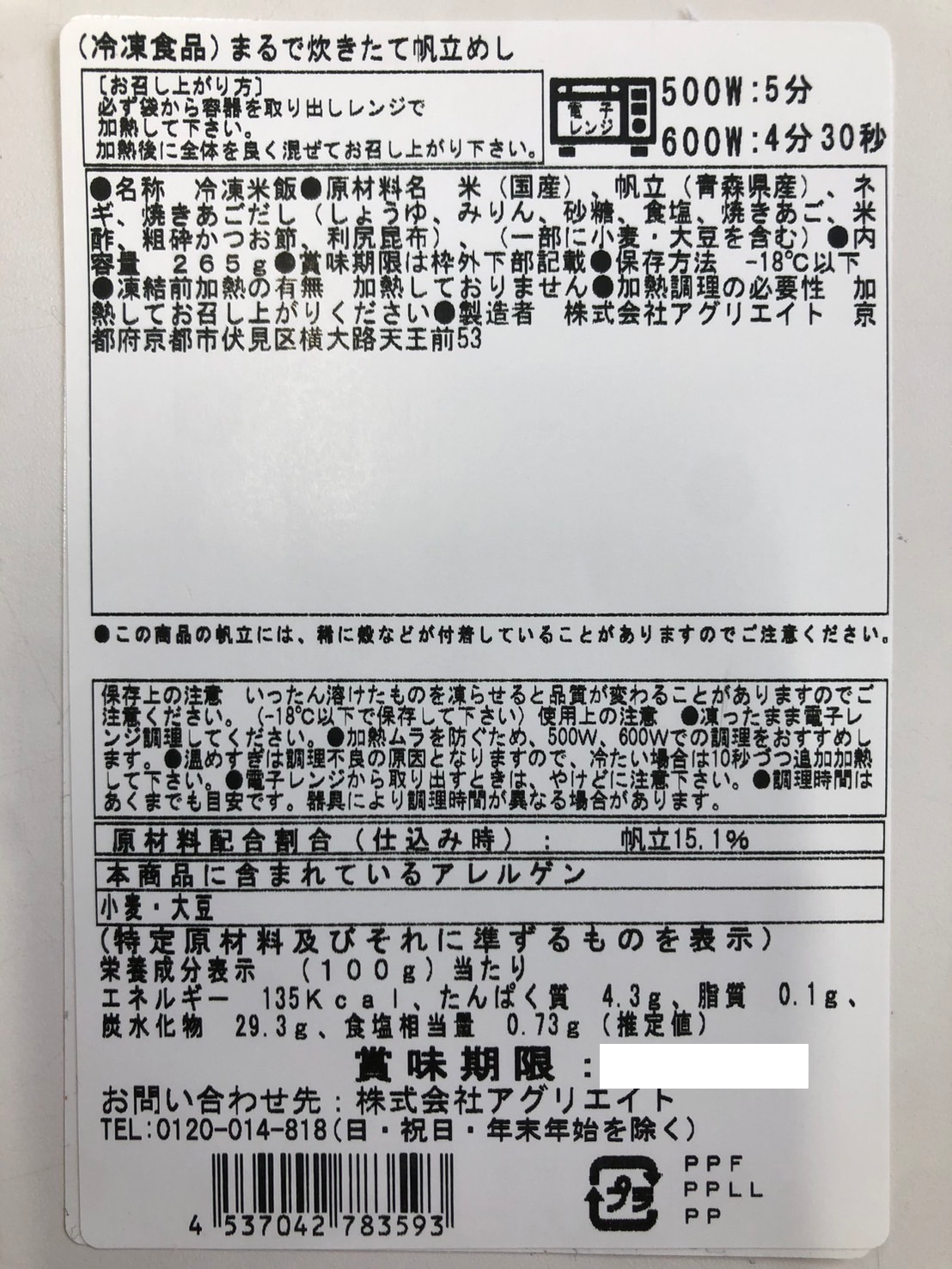 ・原材料:牡蠣、帆立、米、出汁など厳選素材使用。