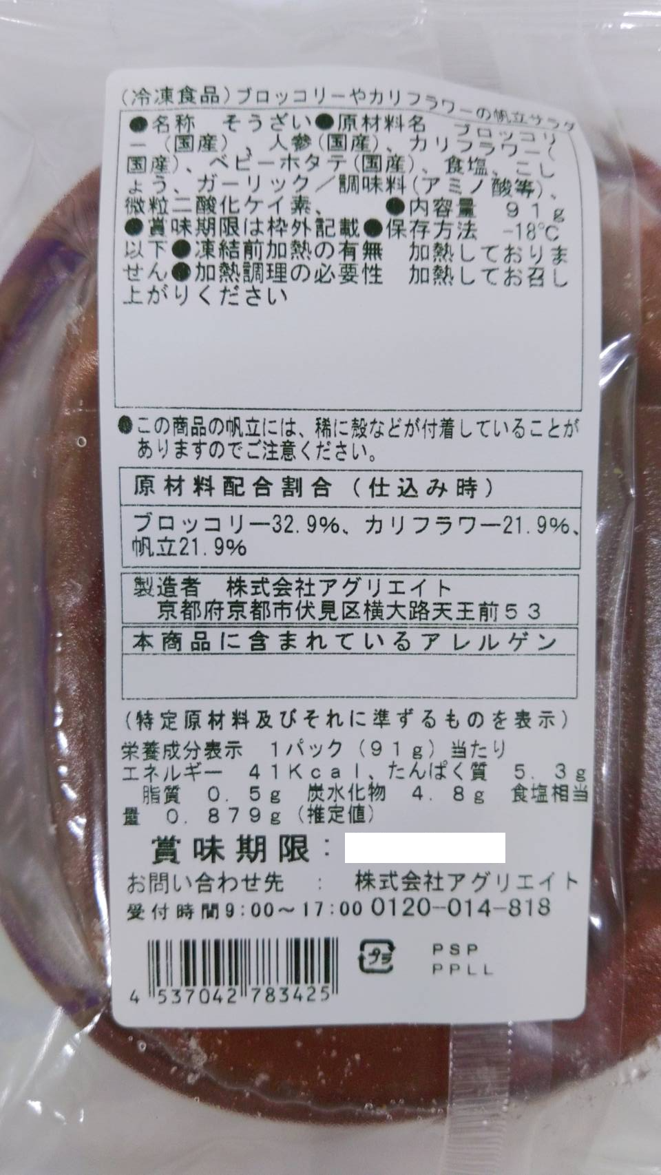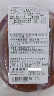 ・原材料:ブロッコリー(国内産)、カリフラワー(国内産)、鶏肉(国内産)、ホタテ(国内産)
