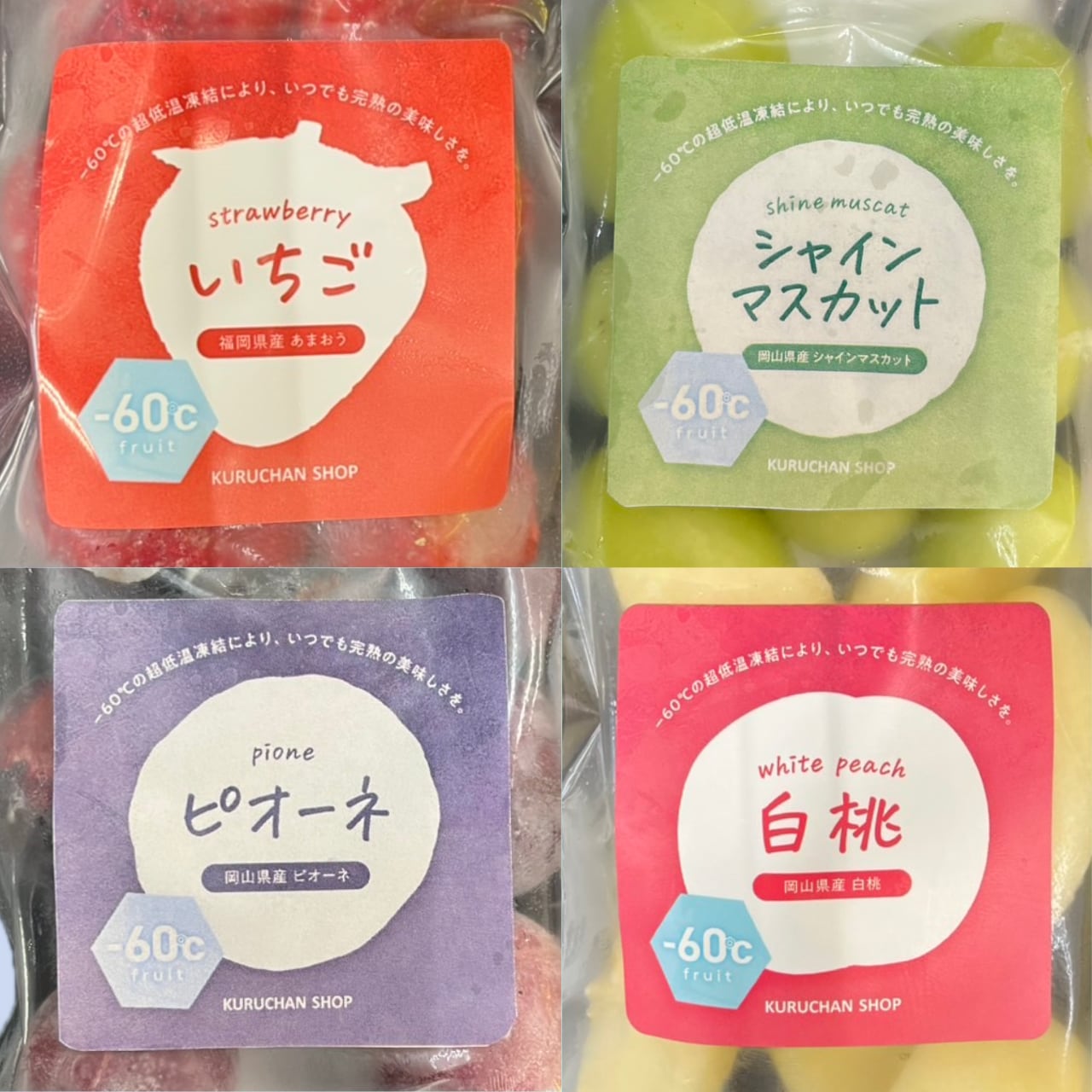 (いちご 100g×2袋、白桃 100g×2袋、シャインマスカット 100g×2袋、ピオーネ 100g×2袋)